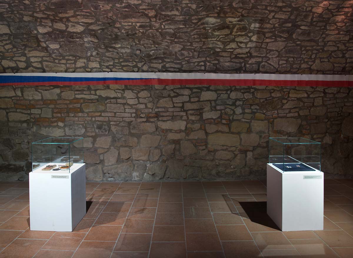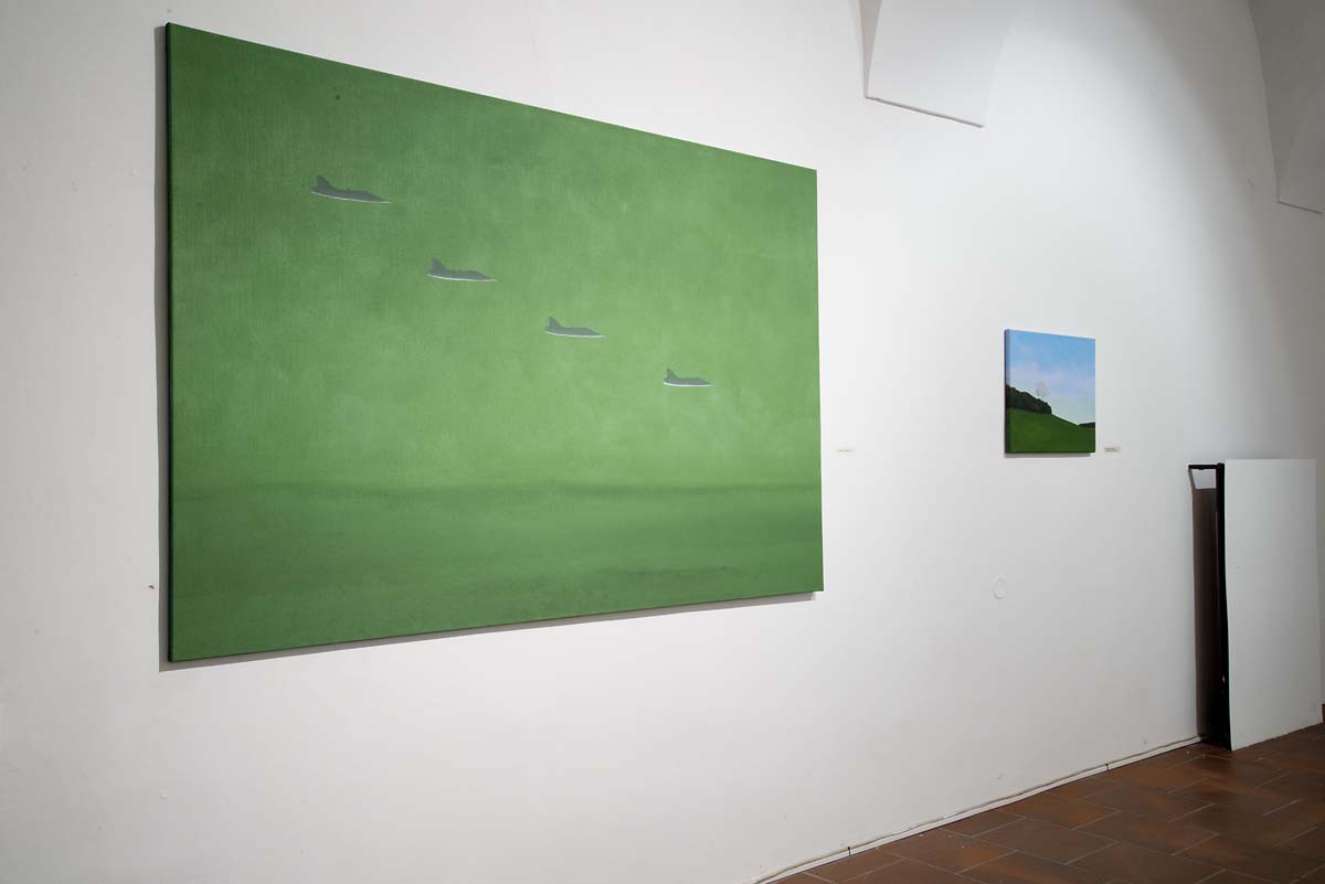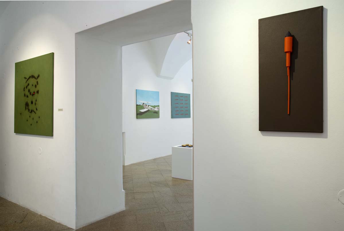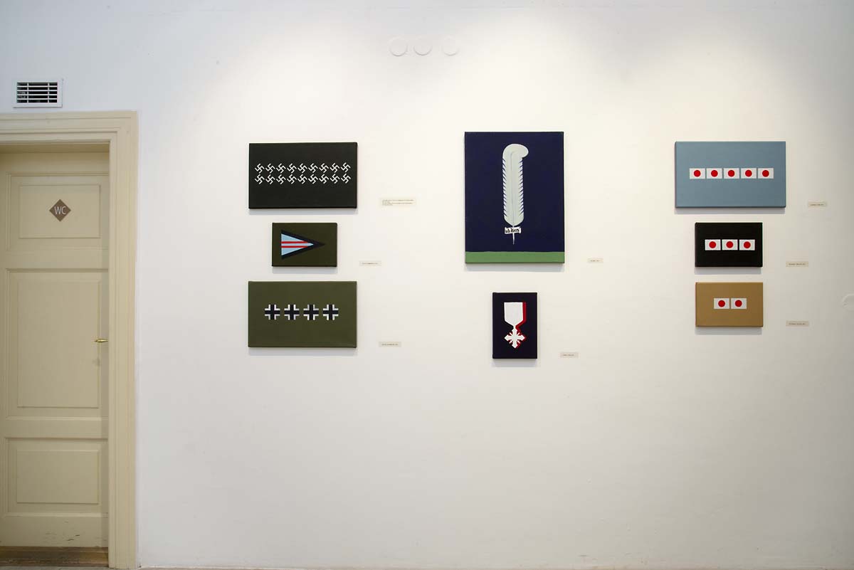 Na výstavě v plzeňské galerii představí výběr z několika cyklů, na kterých tématicky pracuje několik let. K těm nejstarším patří obrazy ze souboru Krajina, která může explodovat, kde na monochromně namalované plátno použil jednoduché piktogramy moderních a současných zbraní (gripeny, tanky apod.), jež mají jednak symbolizovat historickou zkušenost, ale i vybavenost současného světa stále připravenou vojenskou technikou. Naopak s aktivní silou pracuje ve svých komorních akcích, kdy na klasicky připravené a monochromě podmalované plátno aplikuje řízenou kresbu pomocí zápalné šňůry a střelného prachu. Vzniklé „pyroobrazy“, přestože jsou malovány výbušninou, působí překvapivě krásně a poeticky. Na výstavě je zastoupen i jeden z obrazů z cyklu Čápy, kde autor volně pracuje se symbolem slavné francouzské stíhací eskadry z I. světové války, jenž byl inspirací pro znak 312. československé stíhací perutě za II. světové války v Anglii, a který francouzské letectvo používá dodnes. Umělec pracuje i se symbolikou nacistickou, ale její význam používá v jiných souvislostech, tak jako v případě díla 18. fašistů Karla M. Kuttelwaschera. Na monochromní tmavě šedou plochu obrazu malého formátu namaloval ve dvou řadách osmnáct hákových křížů, které symbolizují počet německých letadel, jež český pilot sestřelil při válečných operacích. Vlček tak zopakoval způsob, jímž si české eso britského královského letectva zaznamenávalo počet sestřelených letadel pod kabinu svého stroje. K tomuto cyklu lze přiřadit i drobné portréty válečných hrdinů, kterým dominuje obraz s podobiznou Ireny Bernáškové. Bernášková byla novinářkou a první českou ženou popravenou za odboj proti fašismu. Na výstavě je třemi menšími obrazy zastoupen i cyklus věnovaný legendární postavě fiktivního hrdiny Péráka, který za protektorátu bojoval proti německým okupantům a kolaborantům, škodil německému válečnému hospodářství a strašil lidi. Výstavu Vlček doplňuje svojí rozsáhlou časosběrnou fotodokumentací svých aktivit, které provozuje v rámci historického re-enactmentu, drobnými autorskými objekty a svou sbírkou válečných vyznamenání a dobových předmětů, jež prezentuje jako ready-made objekty ve své neporušené autentické podobě.